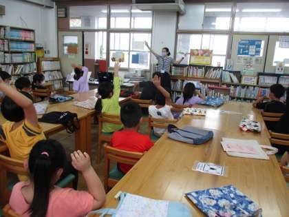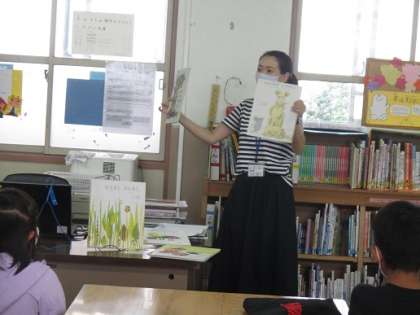 2年生は今,国語で「スイミー」を学習しています。今日は,学校司書の先生から,スイミーの作者であるレオ=レオニの作品のブックトークをしてもらいました。小さな生き物が主人公のお話が多いことを教えていただいたり,「ひとあしひとあし」という尺とり虫のお話の読み聞かせをしてもらったりしました。レオ=レオニのお話をたくさん読みたいですね。