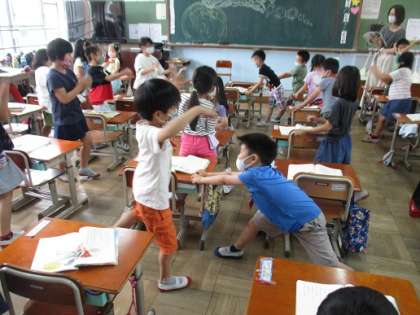 1ねんせいは こくごのじかんに 「おおきな かぶ」の おんどくげきの れんしゅうを しました。さいしょは せんせいの おんどくに あわせて みんなで うごきをつけました。かぶを ひっぱる うごきが じょうずに できていました。つぎの じかんは おんどくはっぴょうかいに むけて,グループでれんしゅうを します。