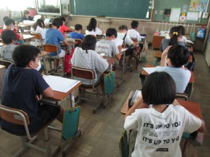 3時間目は復習テストをしている学級がありました。夏休みの学習の成果を発揮することができたでしょうか。
