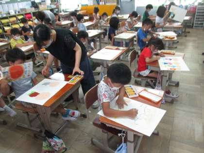 「おんせんに いったこと」や「はなびをしたこと」「プールでおよいだこと」を かいているひとが いました。
