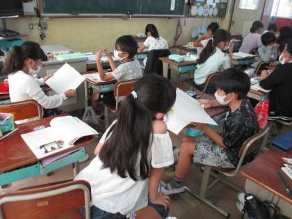 「ごんぎつね」の2回目の授業でした。今日はお話を読んで,登場人物の兵十やごんに注目して感想を書きました。「ごんはじつはいいきつねだったんだと思いました。」「反省したのにうたれてしまって,悲しいと思いました。」などの感想を書いていました。