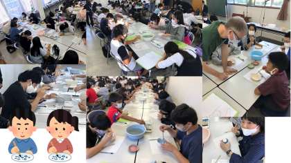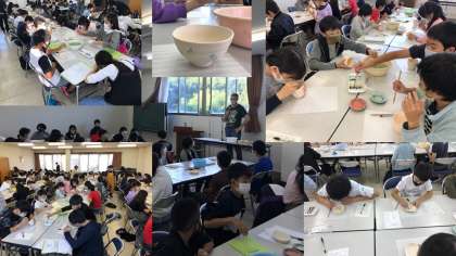 方円館では,絵付け体験をしました。講師のピーターさんに指導を受けた後,みんな思い出に残る作品作りに一生懸命でした。