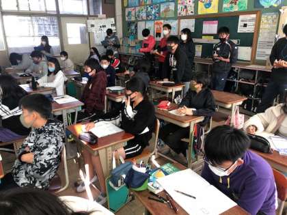 不規則な形をした池の体積を,どのように求めたら正確に近い値が求められるのかを考えました。まずは自分の考えをまとめて,友達と交流しながら,よりよい求め方探っていきました。