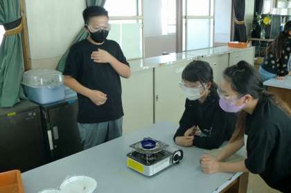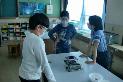 ろ液を熱して水の量を減らす方法と,ろ液の温度を下げてものを取り出す方法の二つの実験をしました。