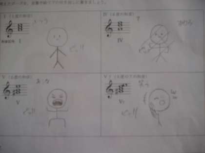 音楽の学習で和音の学習をしています。和音の響きを感じるために,和音にふくまれる音のイメージを動きで表現しました。「この和音は上がっていく感じだな。」「これは下がってから上がるな。」と話し合いながら,動きをつけて発表しました。