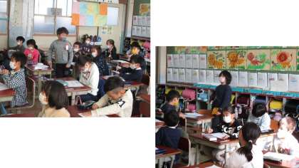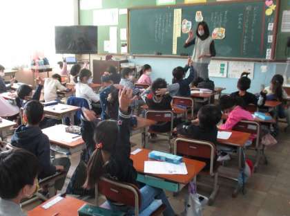 いじわるをしていたこんたに,「いじわるはやめろよ。」と言えたときのぽんたの気持ちを考えて,役割演技で発表しました。「言えてよかった。」「こわかったけど言えてすっきりした。」などの意見がありました。