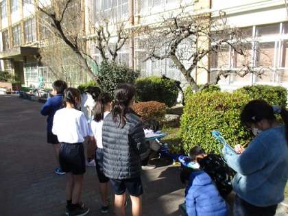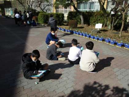 学校の冬の様子を観察しました。意識してよく見ると,中庭のしだれ桜や椿のつぼみがふくらんでいたり,みのむしがいたり,水仙の花が咲いていたりすることに気付きます。今から春に向かってどのように変化していくのか引き続き観察したいですね。
