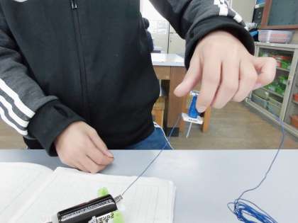 前回,電磁石とは何かを考えました。導線を何回も巻いたもの(コイル)の中に,鉄心を入れて電流を流すと電磁石になる・・・ということから,50回導線を巻いて,コイルを作って回路を完成させました。