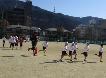 3年生がペース走をしていました。これまで持久走記録会に向けて練習していたこともあり,力強く走っています。今年から距離が長くなりましたが,一生懸命走る姿がたくましく感じられました。