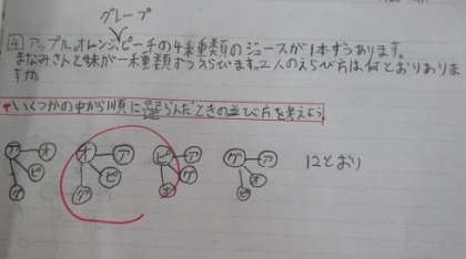 どんな並べ方があるかをノートにひとつひとつ書いて考えていきました。