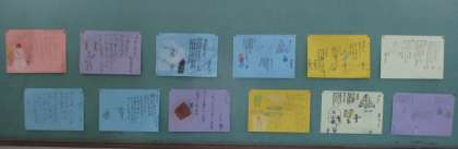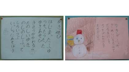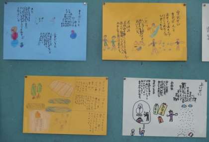 3年生が作った詩が掲示されていました。「るすばんたのんで まるふたつ」や「のしのしふって」などの言葉が,読んでいると思わずくすっと笑ってしまうような,子どもらしくてかわいい表現だと感じました。心温まる素敵な詩ができましたね。