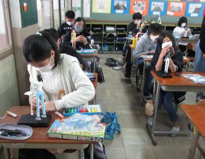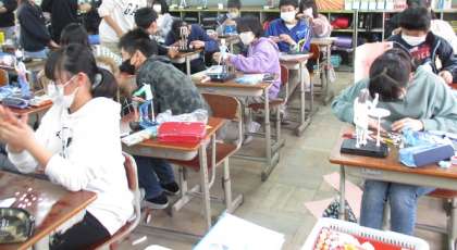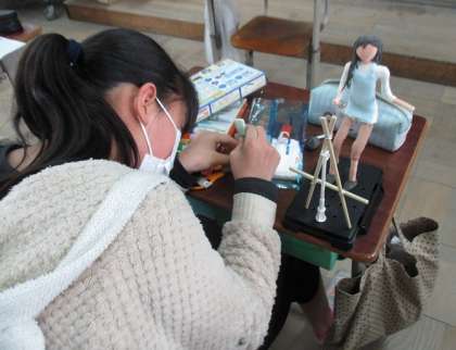 未来の自分がしたいことや様子などを思い浮べて,12年後の自分の姿を針金と紙粘土で作ります。動きやポーズを工夫したり小物も作ったりして,より細かく表現することができていました。