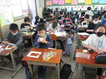 3年 図工 「ねん土フォトフレーム」