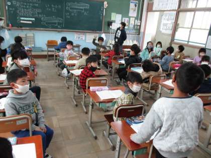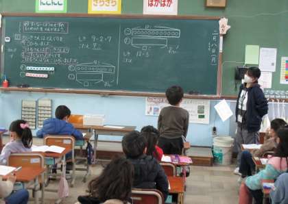数図ブロックを操作したり図をかいたりして,小さいほうの数を求める問題を考えました。式をノートにかいたあと,その式になったわけをペアや学級全体で交流しました。自分の考えをしっかりと伝えることができましたね。