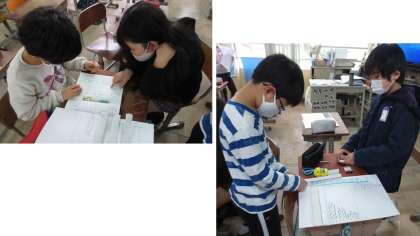 この時間は,グループに分かれて発表原稿やグラフをかいたり,発表練習をしたりしていました。