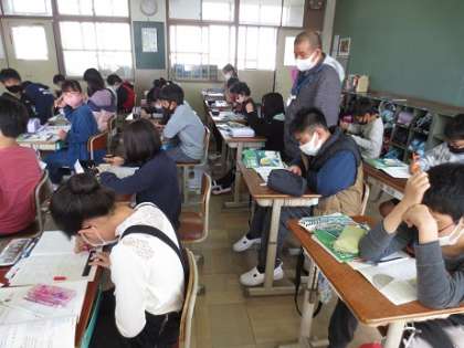 「対称の軸」に着目して,線対称な図形の性質を調べました。その後,練習問題に取り組み,この時間の学習内容のふり返りをしました。