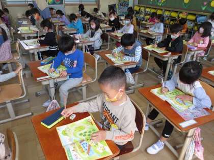 教科書の絵を見て,同じ仲間を鉛筆でかこんで,いくつあるかを数えました。仲間をたくさん見つけられましたね。