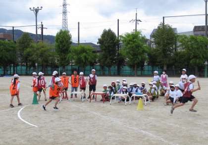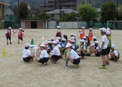 今日は2チームずつ走る練習をしましたが,友達の応援もあり,みんな元気いっぱいに走っていました。