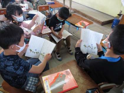 「きつつきの商売」では,場面の様子や登場人物の気持ちを想像しながら読む学習をしてきました。今日はグループで好きな場面を選んで,役割分担を決めたり,読み方の工夫を考えたりして,音読発表会に向けた準備をしました。