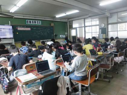先日撮影した写真に,観察した内容を書き込んで,観察カードを完成させました。タブレットを使い,写真を画面上に出して,形・色・大きさ・様子などを直接手書きだったり,テキストを使って文字を打って書き込んだりし,できた観察カードをロイロノートを使って提出しました。苦手な児童には,「ここはこうするんやで」とお互いに教え合いながら,新しい形の観察カードを作り上げることができました。