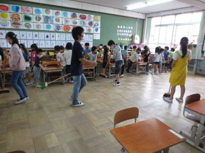 1年生の教室の掃除は6年生がしてくれています。