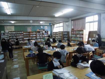 子ども達が大好きな図書室での読書の時間,みんな思い思いに本を手に取り,じっくりと読んでみたり,時には友達に「これ,すごいな!」などと言ったりしながら,読書活動を進めることができました。たくさんの本に出会い,どんどん心を肥やしていってもらいたいと思います。