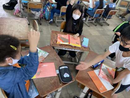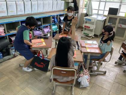 国語科「もっと知りたい,友だちのこと」の学習では,もっと知りたいことを考えながら友達の話を聞きました。話の後には聞いてみたいことを質問し,話し手からより多くの話を引き出すことができました。子どもたちは「いつ」,「どこで」や「なぜ」,「どのように」などを意識して質問することが大切だと気づいていました。