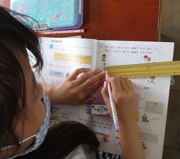 今日は,初めてものさしを使って,決められた長さの直線を引きました。