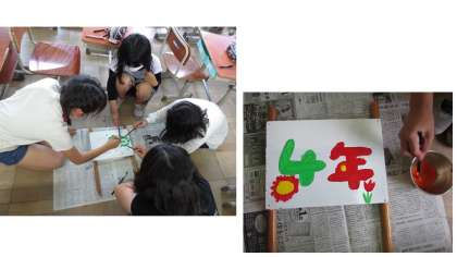 園芸委員会は,学校園に立てる各学年の看板にきれいに絵を描きました。