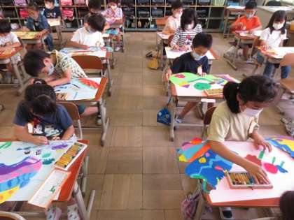 思い思いの色や形をした不思議なたまごから,何が生まれるのかな?