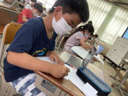 理科の学習では「こん虫の育ち方」を学習しています。今日はタブレットを使って,こん虫がどのように成長するのか調べました。子どもたちは,こん虫の姿が変わっていく様子に驚いていました。