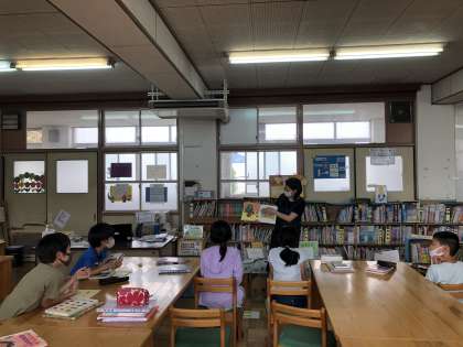 図書室の読書の時間に「ぱんつくったよ」の読み聞かせがありました。句読点をどこに打つかで意味が違ってくる,とても楽しいお話でした。子どもたちは「パン,つくったよ」「パンツ,くったよ」など自分たちで考え,参加しながら「なぎなた読み」にふれることができました。