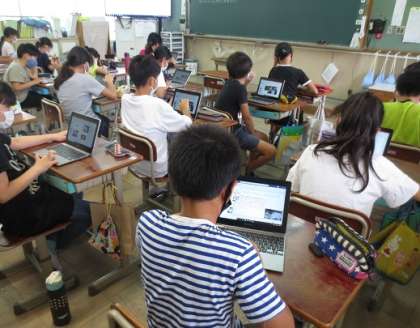 5年生は6月に行った花背山の家での宿泊学習の体験について,4年生に伝えるためのパワーポイントを作っていました。