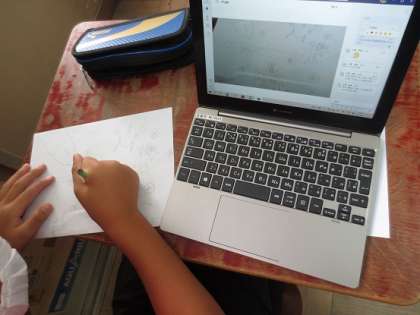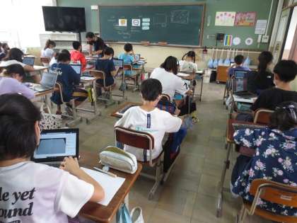 5年生も「お話の絵」に取り組んでいます。アイデアスケッチを写真に撮り,自分の思いを添えて提出します。それをお互いに見てコメントを送り合いました。