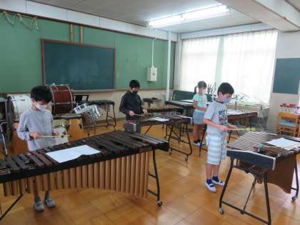 「ミッキーマウスマーチ」を木琴を使って練習しました。木琴の使い方やメロディーを確認しながら,楽しく学習することができました。難しいところは,自分で何度も練習することで少しずつできるようになってきました。