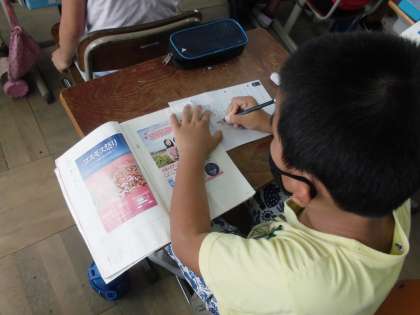 じっくりと集中してポスターを見ながらワークシートに同じところや違うところ書くことができ,なぜそれぞれ表記の仕方が違うのかを交流の中で見つけると,「そうやったんや〜」と納得する姿が見られました。