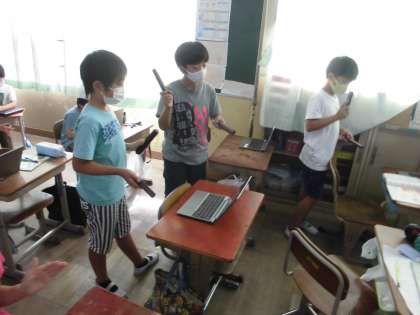 音楽では,緊急事態宣言が明けたので,久しぶりにグループでの楽器演奏をしました。