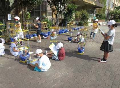 今日は,朝顔の花が枯れたあとの様子を観察して絵を描いたり,気づいたことを文章で書いたりしました。