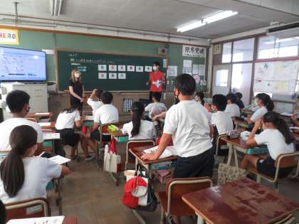 ALTのグリーン先生と一緒に,人の職業や性格などを紹介する言い方を学習しました。