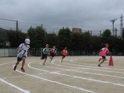3つのグループに分かれてリレーをしました。さすが6年生。どのチームも迫力いっぱいの走りでした。