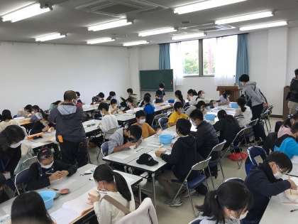 子ども達は早速,絵付け体験に挑戦中です。