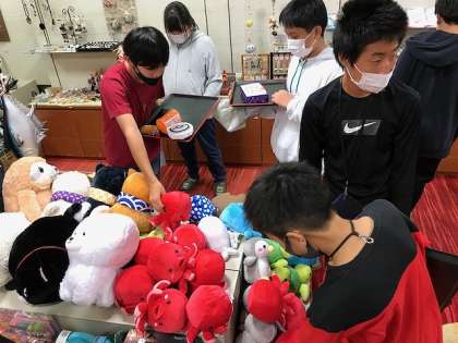 入浴を待っている(又は入浴を終えた)クラスの子ども達は,お土産選びをしています。