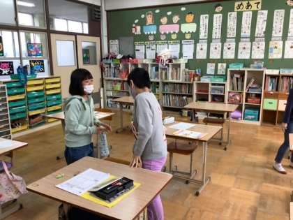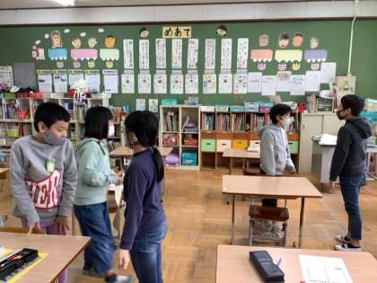 道徳の時間に「あいさつのよさ」について考えました。あいさつなんていらないと思っていた王さまがあいさつのよさに気づいたことから,自分たちのあいさつについてふりかえることができました。これからどんなあいさつがしたいか発表したり,友だち同士であいさつをし合ったりする中であいさつのよさに気づくことができました。「あいさつをすると心がポカポカする」や「いやなことも飛んでいってすっきりする」「自分も相手も心がほわほわする」など子どもたちから出ていました。