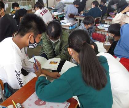 『解体新書』の完成にはどのような人が関わったのかを考えました。解剖の様子の絵を見て,それぞれの人がどんな役割をして,どんな立場の人なのかを考えて交流しました。そして実際に解剖しているのは身分上厳しく差別されていた人であり,解体新書の完成に大きく貢献したことを知りました。