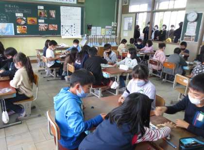 お隣の国である韓国・朝鮮の文化について知りました。韓国・朝鮮の食べ物や服装,音楽などについて知った後,古くから伝わる遊び「ユンノリ」をしました。子どもたちは「すごろくに似てるな。」「コマの形が違うな。」「もっと韓国・朝鮮の遊びがしたいな。」などの感想をもっていました。