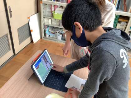 英語で書かれたメニューを翻訳機を使って調べました。その後,サンドイッチを作るために,お店屋さんに行き「I want ○○!」と欲しい具材を注文しました。レジ機能を使って買い物をし,自分だけのオリジナルサンドイッチを作ることができました。