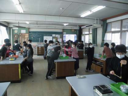 そして,そのコンロの火を使って金属を熱したり,水で冷やしたりして,金属の体積の変化を確認しました。よくわかる実験結果に子ども達は大喜び。しっかりと学習問題をクリアすることができました。