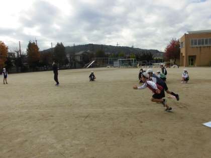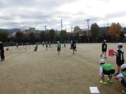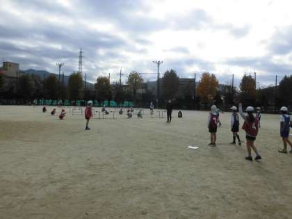 グループで役割を決め,順番に練習ができるようにしています。まだまだスムーズに走りながらハードルを跳び越せませんが,みんなで声を掛け合いながら,うまく,速くハードル走ができるコツを見つけていってもらいたいと思います。