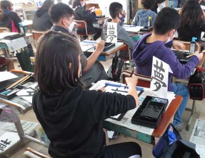 6年間で学んだことを生かして『夢』という字を書きました。画数が多くバランスをとるのが難しい字ですが,穂先を丁寧に動かして書いていました。
