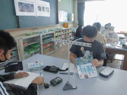 「てこのはたらき」の学習では,てこのつりあう決まりを実験用てこを使い調べていきました。そして,学習の最後に・・・「モビール」を作りました。一人ひとりどんな飾りにしようか考え,いざ吊るすと・・・意外とバランスをとるのが難しくて,友達に見てもらいながら作っている子もいました。「こっちが傾いてるから,この糸をこっちにずらして・・・」などと学習を生かして作ることができました。